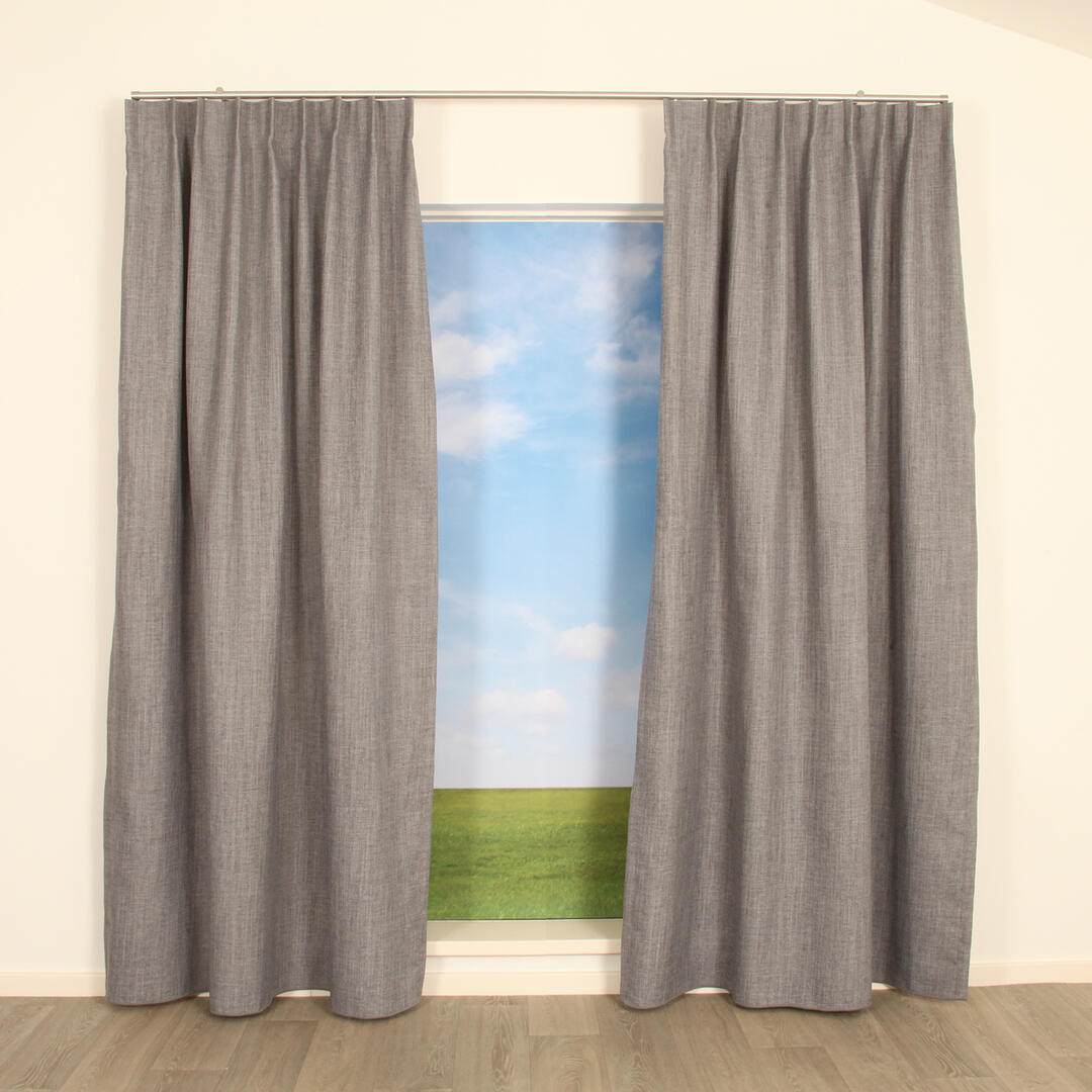 Deze stof is kamerhoog, wat betekent dat deze gordijnen naadloos kunnen worden geconfectioneerd voor een luxe en elegante uitstraling.