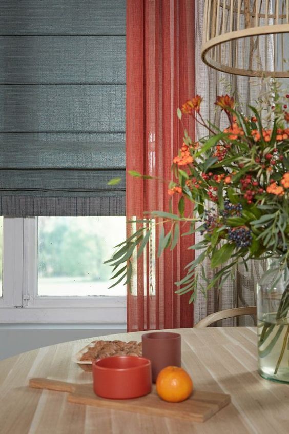 Door twee soorten raambekleding met elkaar te combineren creëer je een extra luchtlaag. Maak een combinatie van een vitrage/vouwgordijn en een overgordijn. Zo houd je de warmte buiten en bespaar je energiekosten in de koudere maanden.