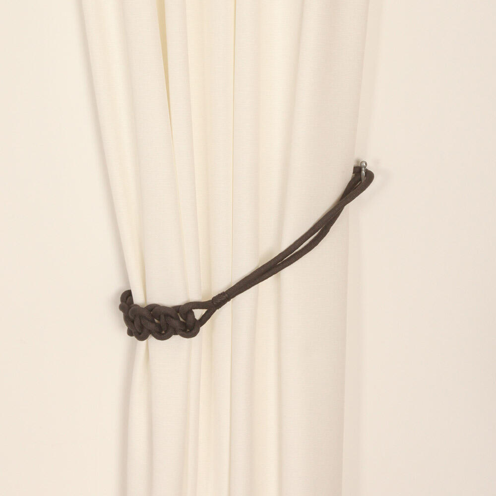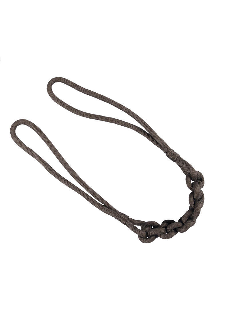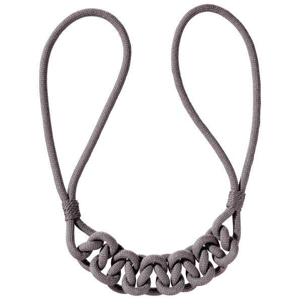 Embrasse met een matte look en een zeer fijne "gebreide" structuur. Deze soepele embrasse is voorzien van grote lussen. In het midden is de embrasse voorzien van een gevlochten detail. De embrasse heeft een totale lengte van 80 cm recht gemeten en een koorddikte van 1 cm.