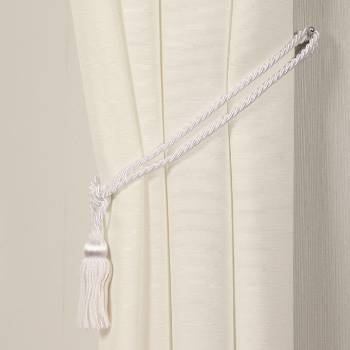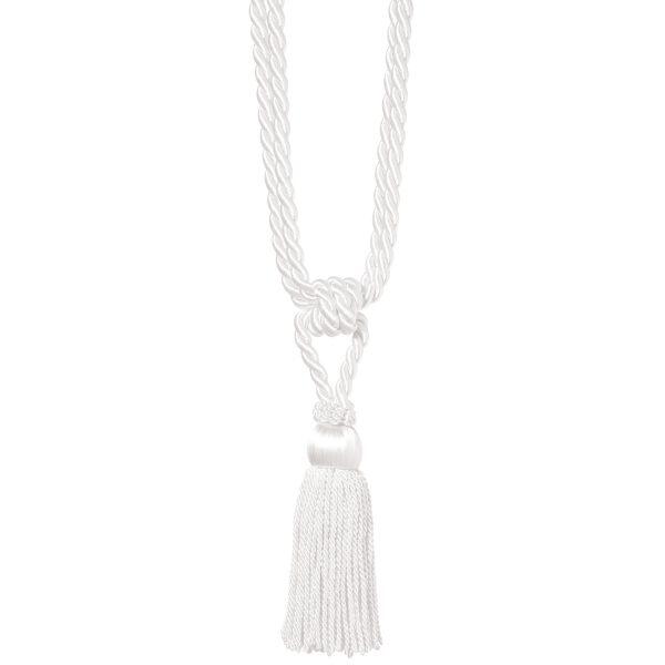 Glanzende embrasse in een witte kleur. Aan het einde van de embrasse zit een kwast bevestigd.