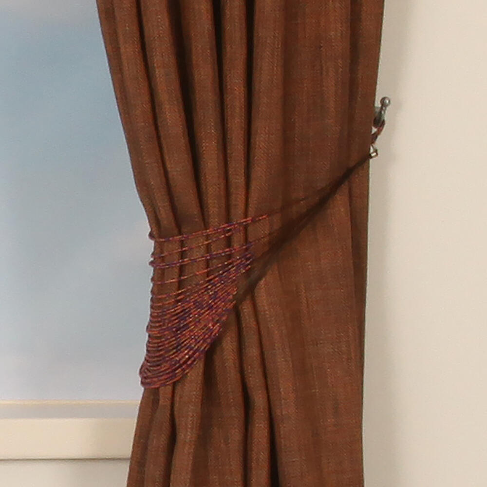 Embrasse bead is een kleinere, subtiele embrasse met veel kleine draadjes en kraaltjes. Geschikt voor lichtere gordijnen.
