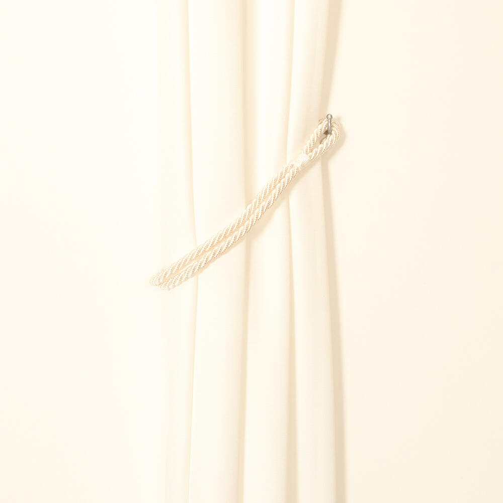 Glanzende naturelkleurige embrasse van twee gedraaide koorden. Mooie kwaliteit waarvan de uiteinden omwikkeld zijn met dunner koord. Bij deze embrasse wordt een grote embrassehaak aangeraden. De volledige lengte van de embrasse is 81 centimeter inclusief lussen.
