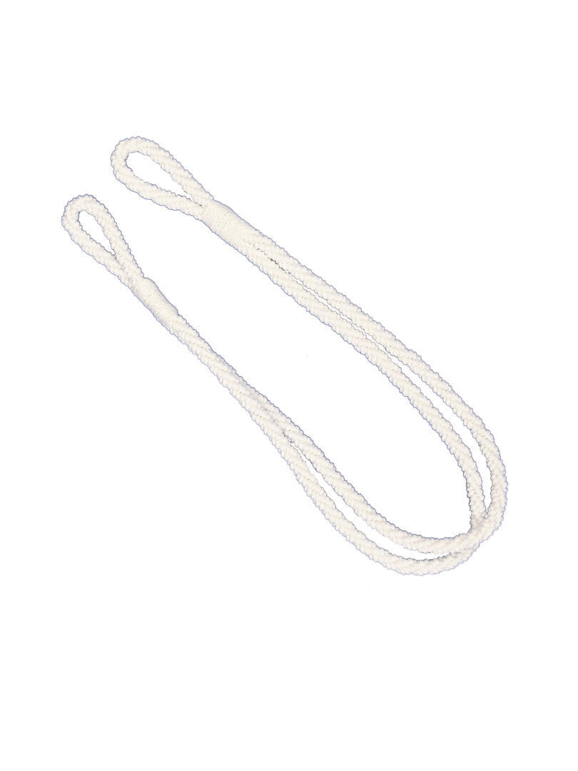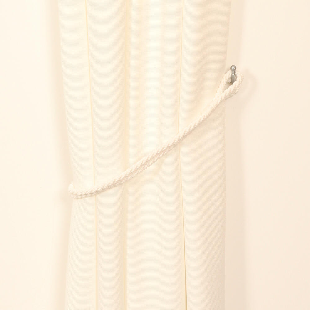 Embrasse in offwhite van twee koorden uitgevoerd in een stevig aanvoelende kwaliteit. De lussen worden gevormd door het omwikkelde deel van de embrasse. De lengte tussen de lussen is 50 cm. De totale lenge van de embrasse is 70 cm. Ieder koord heeft een dikte van ongeveer 1 cm.