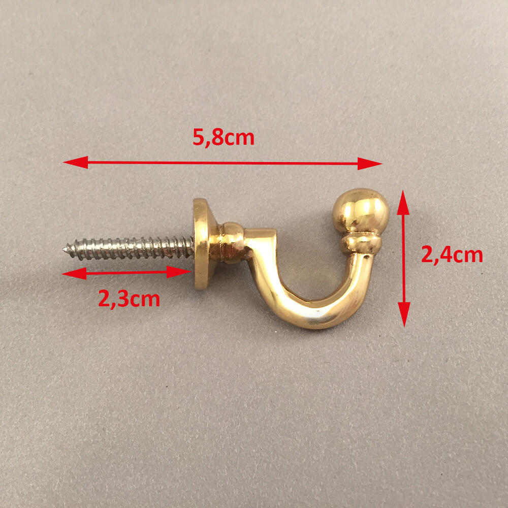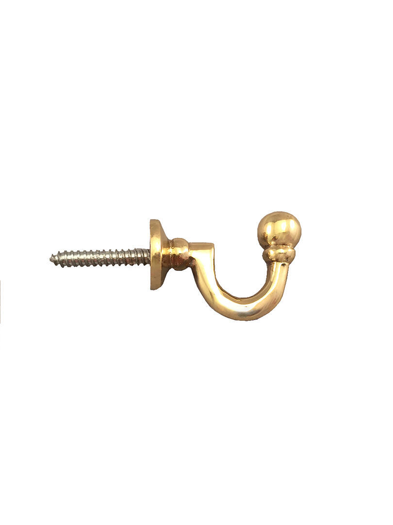 Embrassehaak Sintra brons klein is gemaakt van metaal en gecoat in een messingkleur. De haak is voorzien van een schroefdraad waarmee deze vastgezet wordt in de muur. Geschikt voor dunnere embrasses of soorten met een lusje.