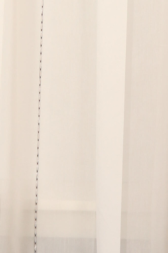 Mooie inbetween in naturelle basisstof, voorzien van lengtestrepen met ingeweven motief. De transpantere banen worden geaccentueerd door de opgeweven glanzende lengtestreep met een zwart accent.