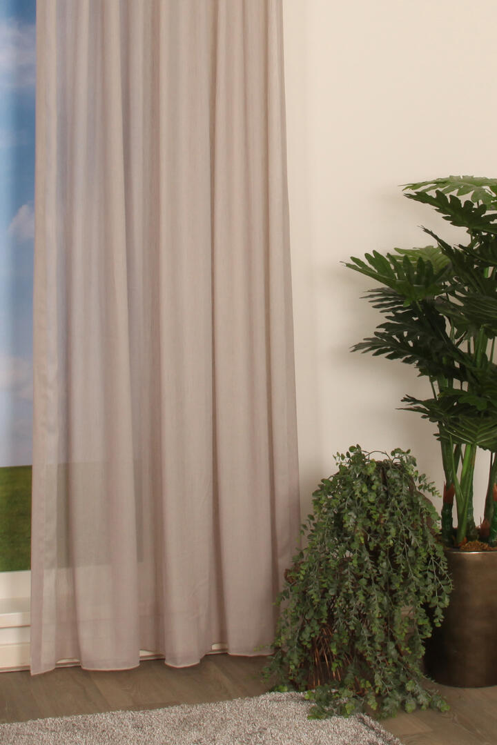 Deze stof is kamerhoog, wat betekent dat deze gordijnen naadloos kunnen worden geconfectioneerd voor een luxe en elegante uitstraling.