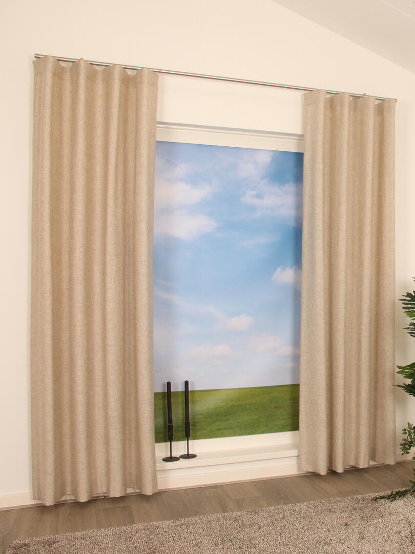 Doordat de stof kamerhoog is kan dit overgordijn naadloos worden geconfectioneerd wat een luxe en elegante uitstraling geeft.