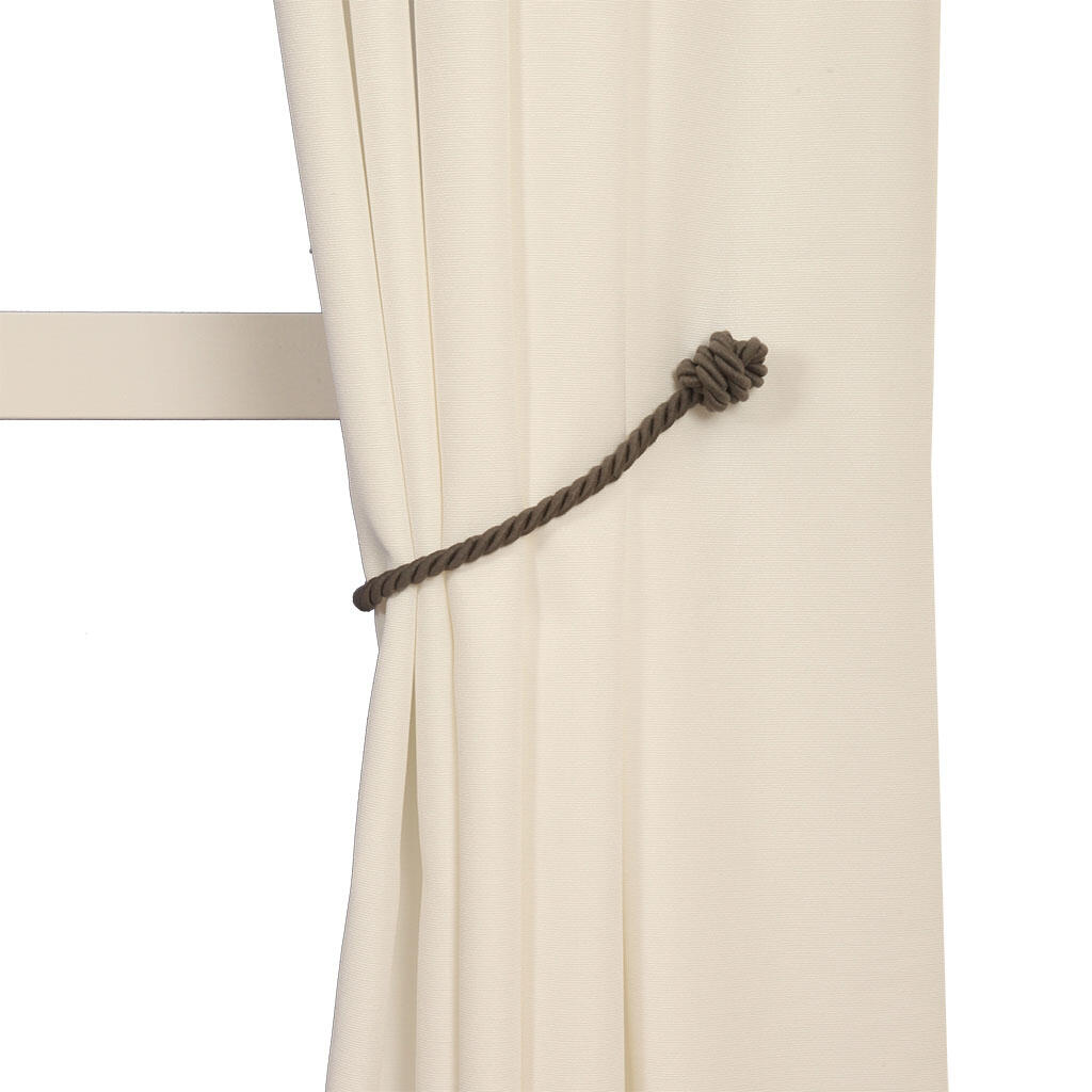 Lengte van knoop tot knoop 47cm. Volledige lengte embrasse 58cm. Koorddikte 1,3cm. Knoopdikte ong. 4cm.