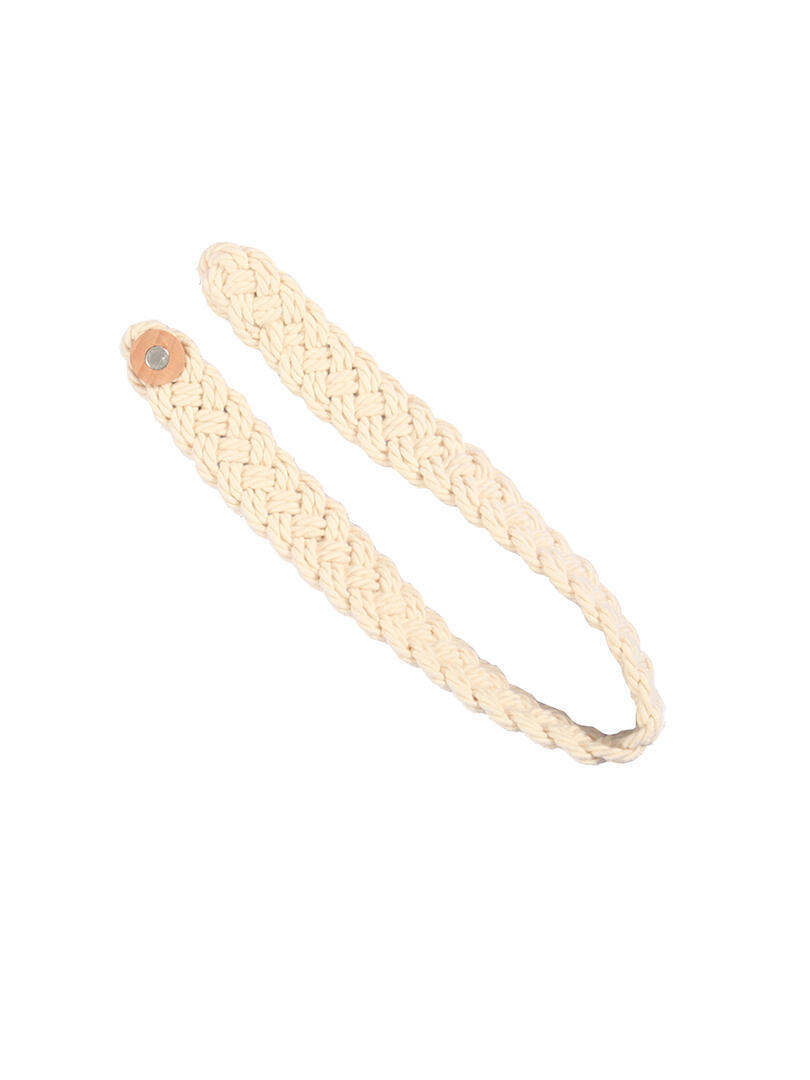 Stoere embrasse van een dikker gevlochten band in een mat garen. De band is aan de achterzijde voorzien van twee magneten, de embrasse wordt met de magneten aan het gordijn bevestigd. De embrasse heeft een breedte van 3,5 cm en een lengte van 58 cm.