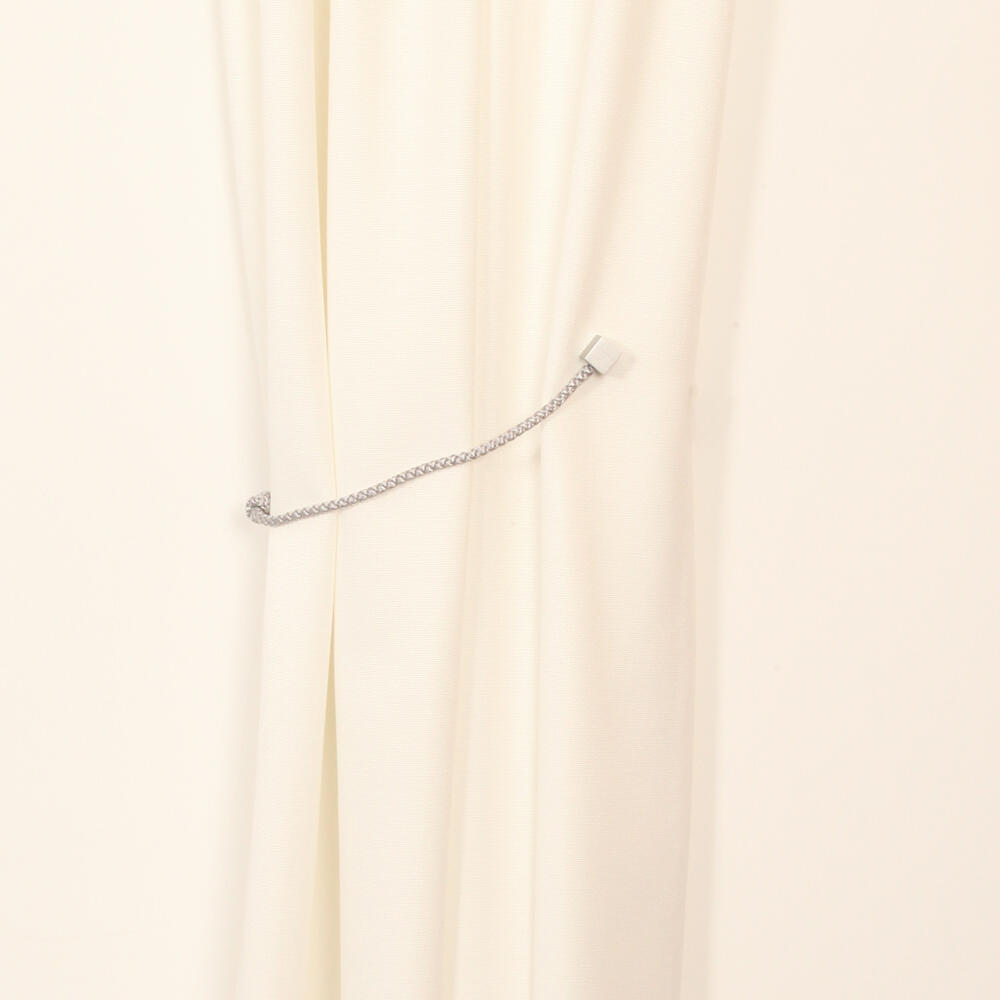 Embrasse van glanzende gevlochten koord met een diameter van 6mm met een knoop in het midden. Deze fijnere embrasse is vooral geschikt voor kleine gordijnpakketten of als decoratief detail. Het koord is bevestigd in twee vierkante houtlook knoppen (1,8x1,8cm) die voorzien zijn van magneten. Het koord heeft een lengte van 56cm. De embrasse heeft een totale lengte van 60,5cm.