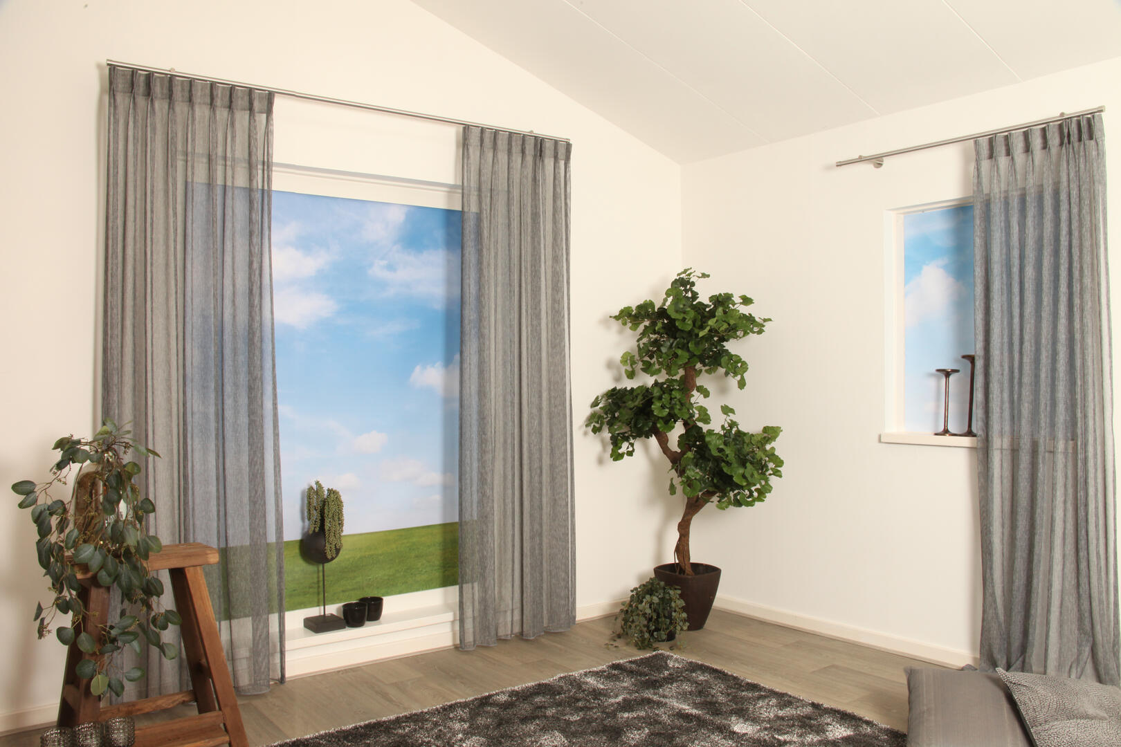 Deze stof is kamerhoog, wat betekent dat deze gordijnen naadloos kunnen worden geconfectioneerd voor een luxe en elegante uitstraling.