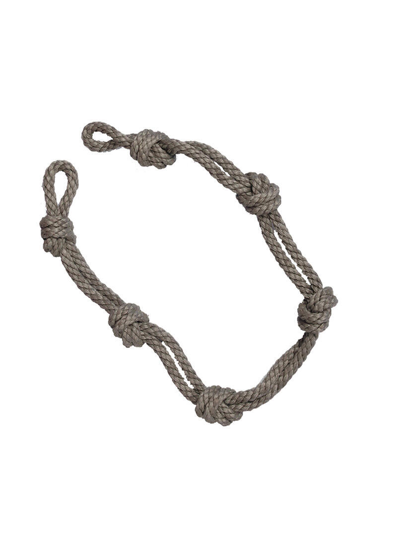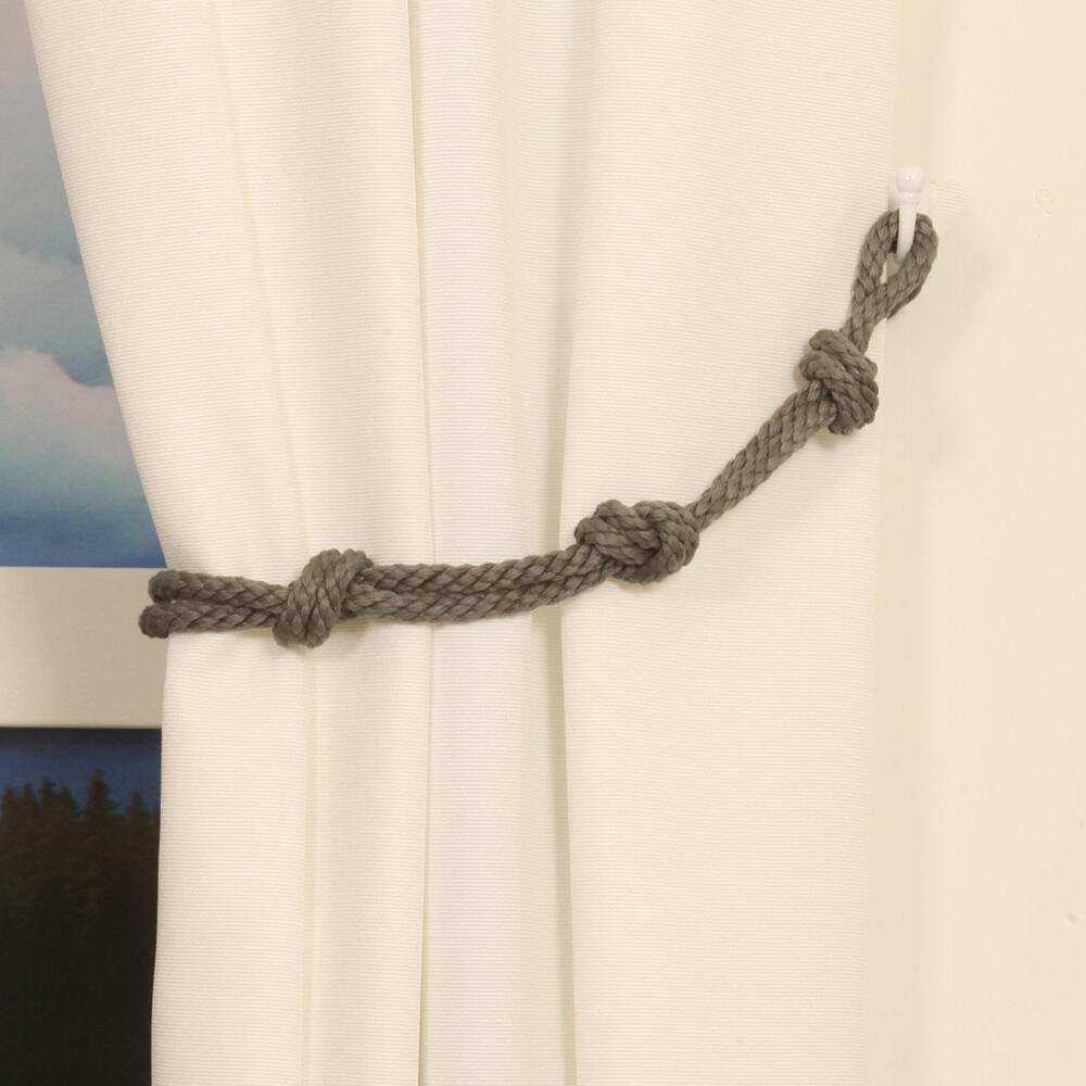 Embrasse in een grijze kleur gemaakt van jute in een natuurlijke look. Grover gevlochten koord met knopen en aan de uiteinden geknoopt met een lus. De lengte van de embrasse tussen de lussen is 65cm. De totale lengte inclusief lussen is 75cm.