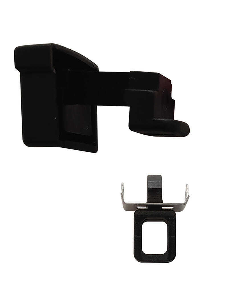 Eindstop voor de KS rail in zwart. De eindstop wordt bevestigd door deze op de rail te zetten, het oogje iets aan te drukken en deze een kwartslag te draaien. Door het draaien klemt de eindstop vast op de rail en kan zo ook weer eenvoudig verwijderd worden.
