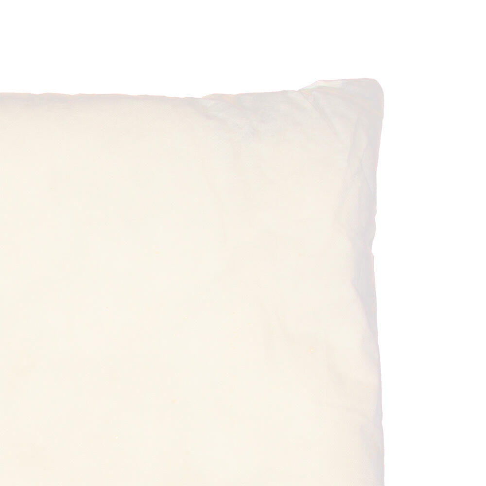 Kussen vulling met veren,  60x60cm groot met een dikte van ongeveer 10cm. Het kussen is voorzien van een katoenen hoes en de binnenvulling is 100% veren. Deze vulling kan gewassen worden met een wolwasprogramma en moet daarna in de droger gedroogd worden om de vulling het mooist te houden.