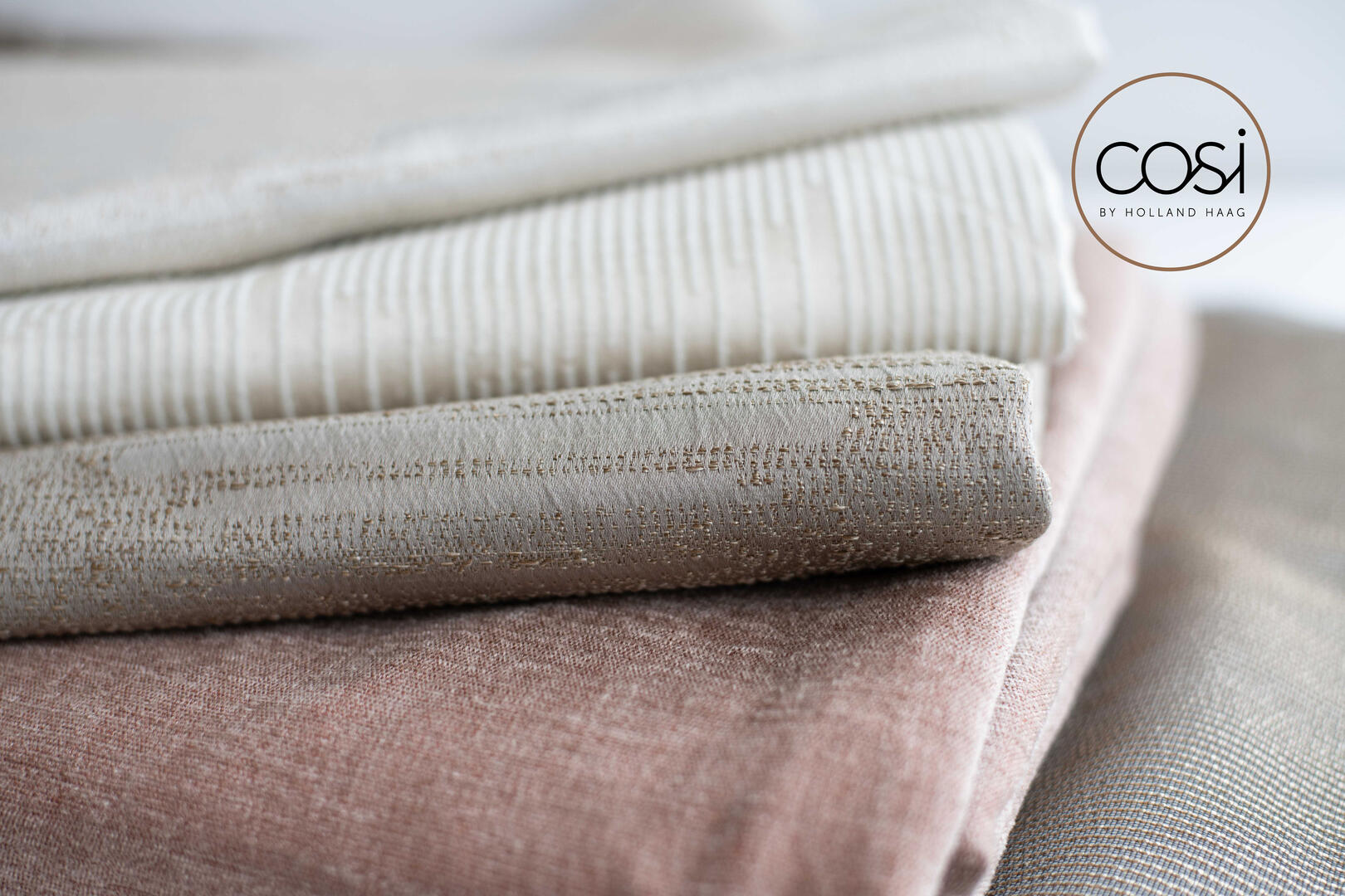 De stoffen voelen zacht en aangenaam aan, hebben een rijke textuur, zoals velours, zware linnen- of katoenstoffen. Rustige neutrale tinten en meer gedempte, aardse kleuren, de Cosi collectie heeft een breed scala aan kleuren. Subtiele texturen en patronen geven de stoffen extra dimensie zonder te druk of overweldigend te zijn, perfect voor een tijdloze uitstraling.