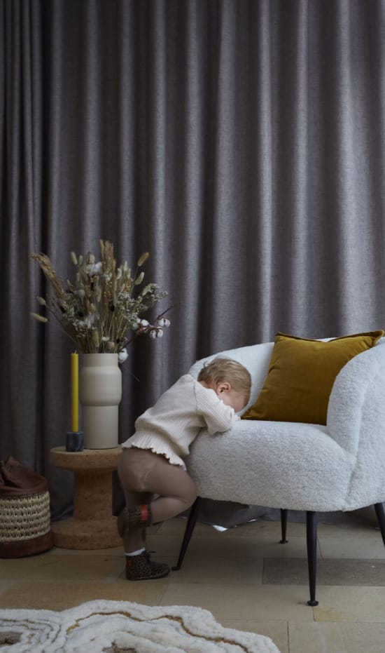 Ook bied de Homers collectie verduisterende-, lichtdoorlatende- en isolerende gordijnen aan. Praktische eigenschappen voor gezinnen, om bijvoorbeeld energie te besparen, zonder in te boeten op design en kwaliteit. De tijd van één gordijn bij een raam is voorbij als je bij de Homers collectie aankomt. De lijn is perfect als je graag verschillende gordijnen bij één raam met elkaar combineert. Denk aan een sierlijk kamerhoog gordijn met een verduisterend vouwgordijn in de slaapkamer. Mooi én praktisch. Of combineer een speelse print met een zacht, effen gordijn.