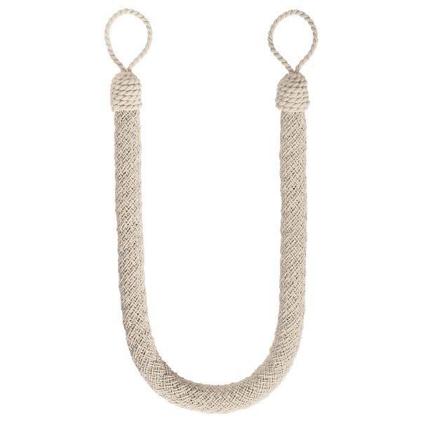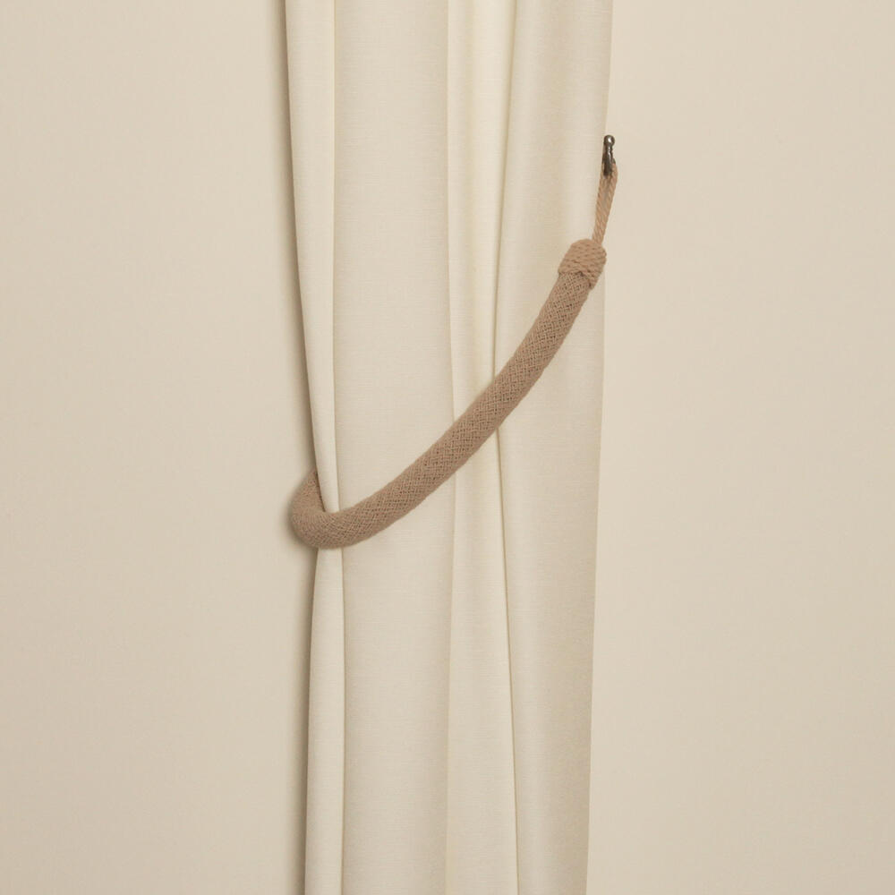 Stoere embrasse van een gevlochten matte textielmix en een extra dikke uitvoering. Totale lengte 85 cm incl. lussen. Dikte koord 3 cm. Deze embrasse is te gebruiken in combinatie met een embrassehaak.