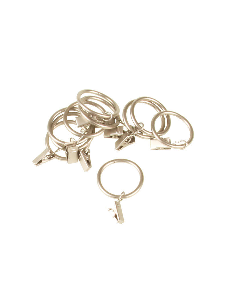Moderne roede ring met klemmetje waaraan u uw gordijn kan bevestigen. Deze worden verkocht per set van 10 stuks. Verkrijgbaar in verschillende kleuren. Binnenmaat ring 32 mm. Buitenmaat 39 mm. Lengte klemmetje 17 mm. Deze ring is geschikt voor een roede tot 24 mm