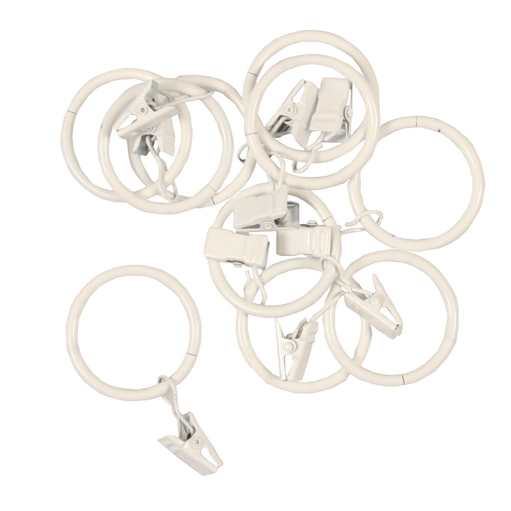 Moderne roede ring met klemmetje waaraan u uw gordijn kan bevestigen. Deze worden verkocht per set van 10 stuks. Verkrijgbaar in verschillende kleuren. Binnenmaat ring 32 mm. Buitenmaat 39 mm. Lengte klemmetje 17 mm. Deze ring is geschikt voor een roede tot 24 mm