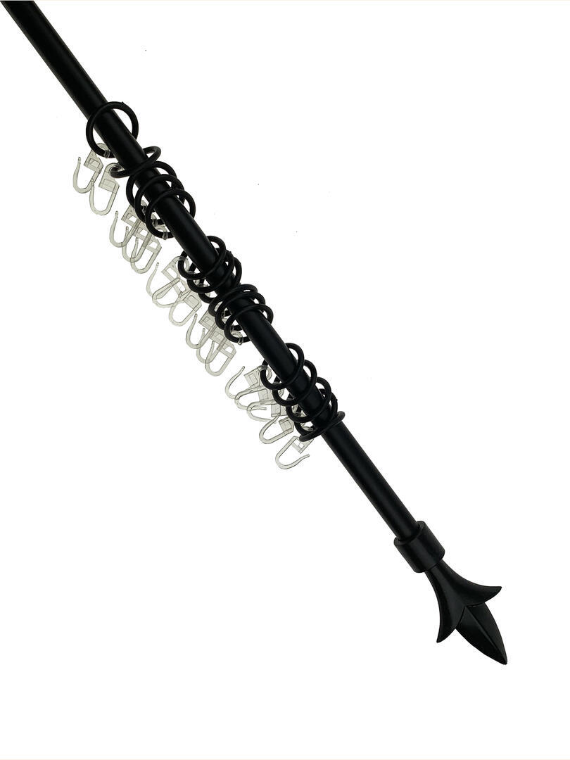 Roede Lelie is van zwart gelakt metaal. De roede heeft een diameter van 17mm. Bijgeleverd zijn 16 kunststof ringen, 2 verstelbare montagesteunen en 2 lelie kunststof eindknoppen. De totale lengte inclusief eindknoppen is 178cm. De montagesteunen zijn in lengte verstelbaar van 6 tot 10cm.